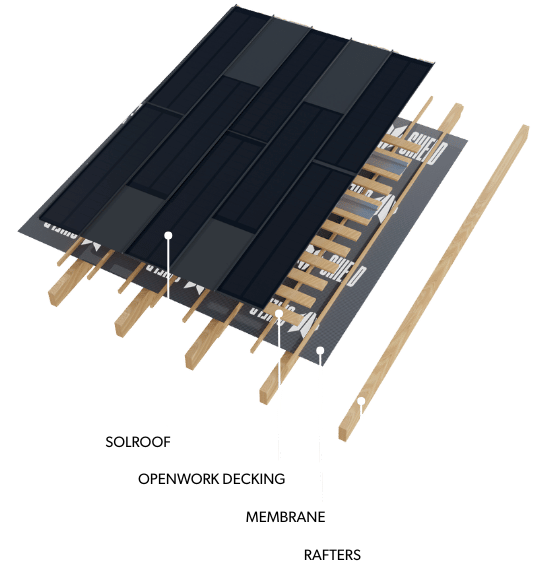 The SOLROOF is installed using technology familiar to roofers, which is incorporated into both the FIT roof panels (inactive part) and the FIT VOLT photovoltaic panels (active part).