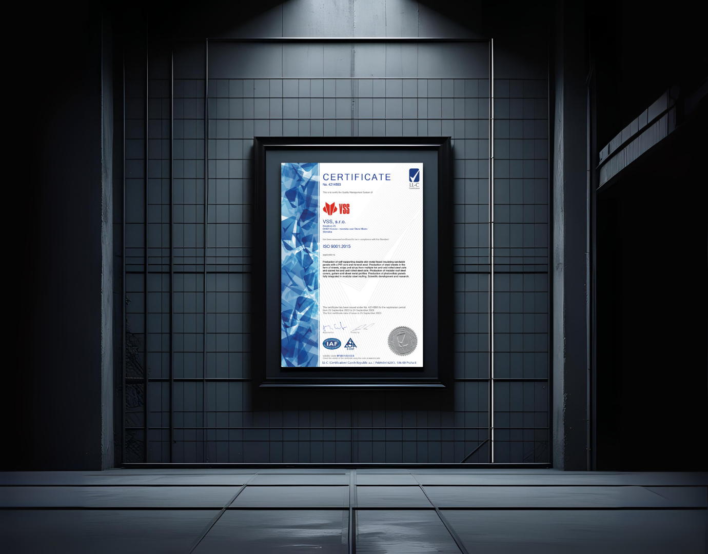 Postępujemy zgodnie z dyrektywami unijnymi, które dążą do stworzenia zrównoważonej infrastruktury i osiągnięcia zeroemisyjności budynków. Nasz zakład produkcyjny otrzymał certyfikat zarządzania jakością produkcji z normą ISO 9001.
